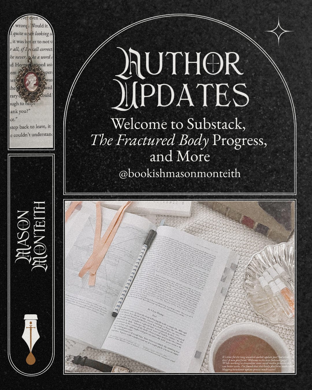 Hello, and welcome to the new Substack page! If you’re new to me altogether, my name is Mason Monteith! I am a fantasy author, literary nerd, and part-time poet! I am working towards one day working as a university professor, but as I work towards that goal, I write fantasy novels, flash fiction, poetry, and more.